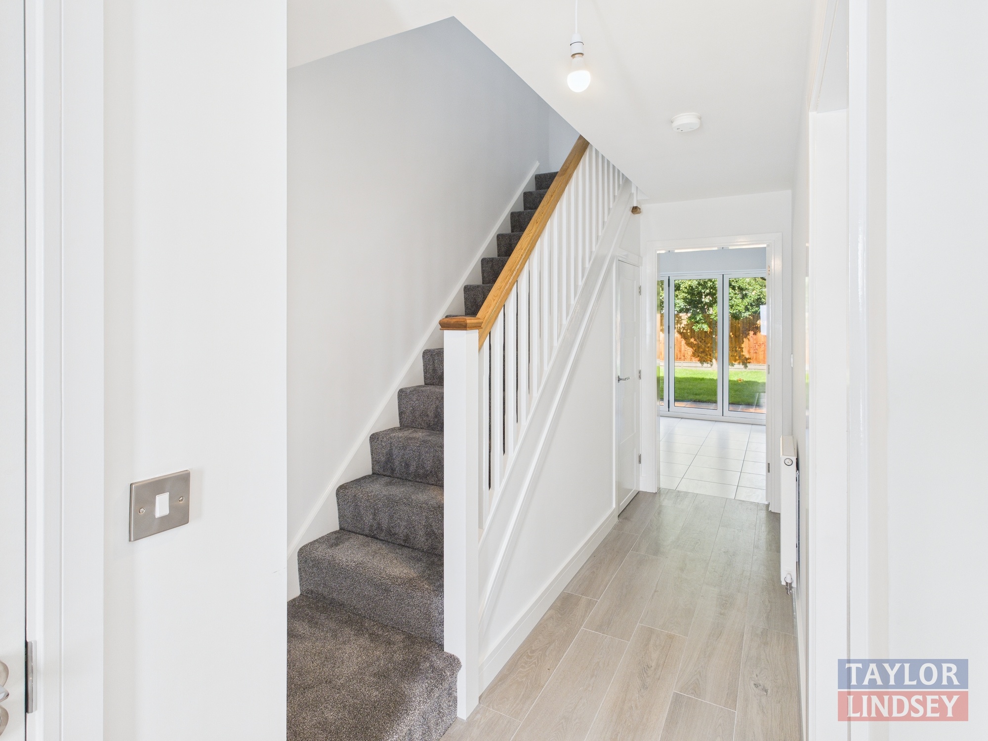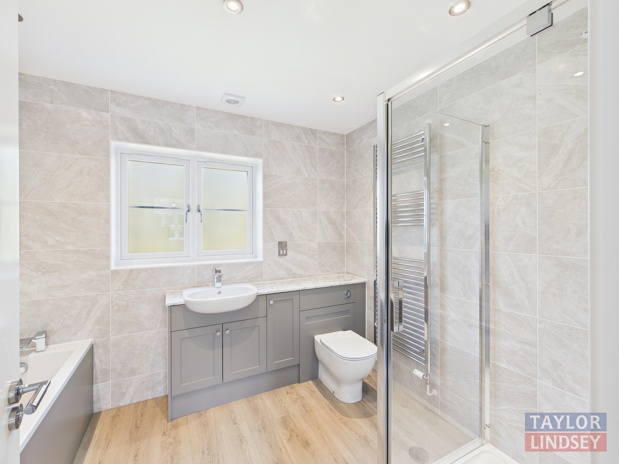 Upstairs offers four well-proportioned bedrooms, three of which are double. The master bedroom features a luxury en-suite shower room. The further three bedrooms share the stylish family bathroom with separate bath and shower cubicle and Porcelanosa tiling.